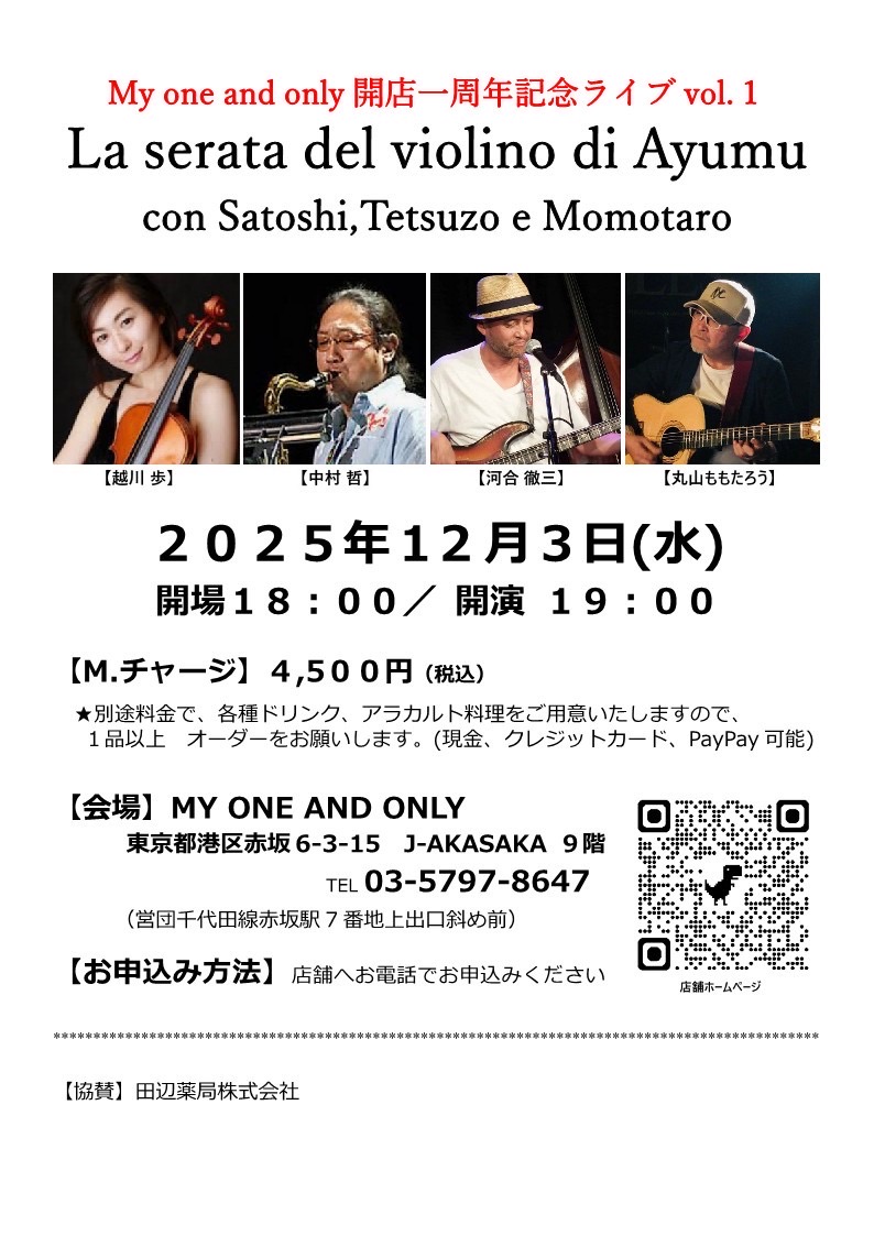 La serata del violino di Ayumu MY one and only開店1周年記念ライブ vol.1