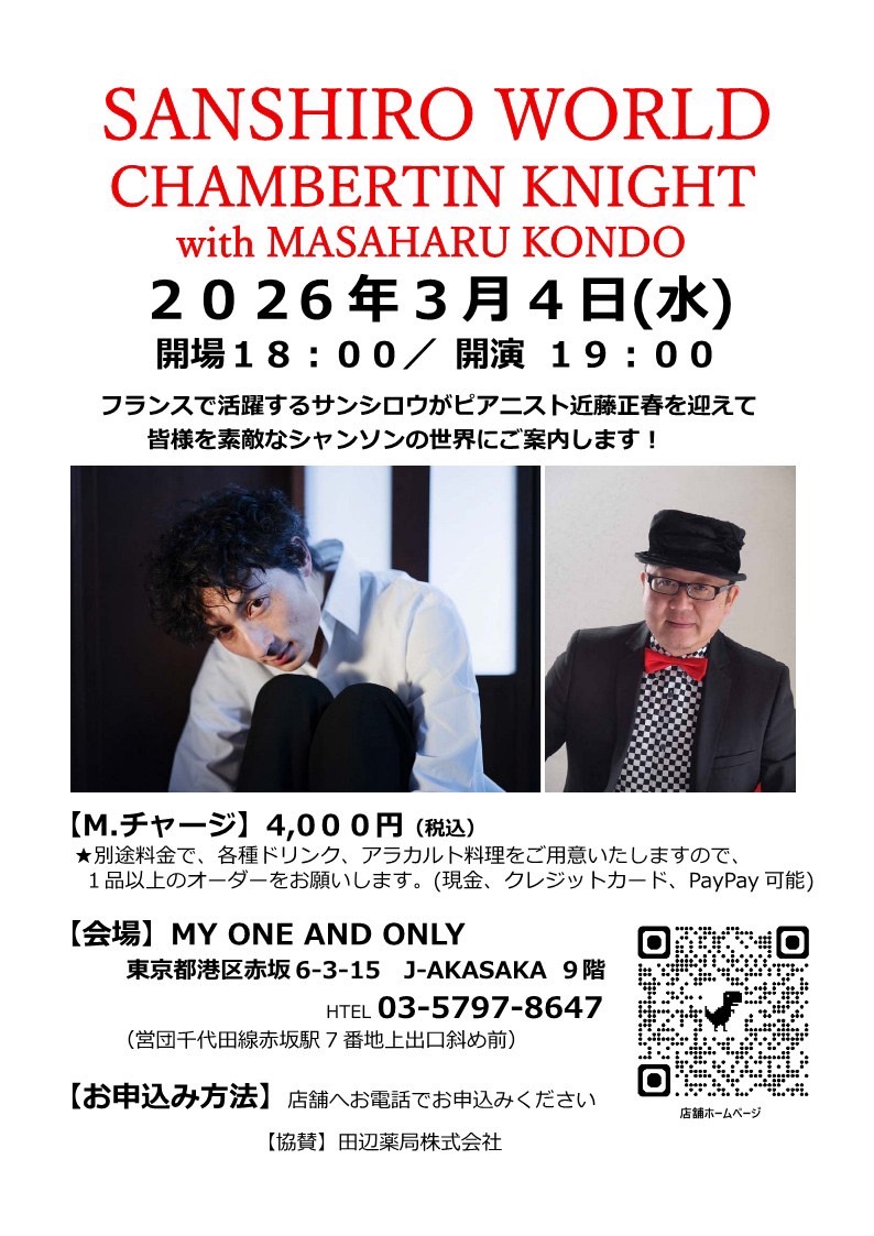 3月 4 @ 6:00 PM - 9:00 PM SANSHIRO WORLD CHAMBERTIN KNIGHT with MASAHARU KONDO SANSHIRO WORLD CHAMBERTIN KNIG […]